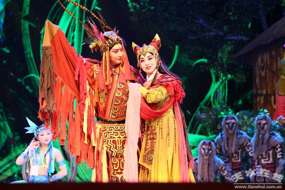 第一場(chǎng):軒轅出生在清水軒轅丘,參加氏族部落比武大賽脫穎而出,拒絕了美麗的雨師,與一見(jiàn)鐘情的西陵氏少女嫘祖結(jié)成姻緣。