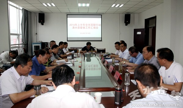 7月16日,2016年上半年全市雙聯(lián)行動(dòng)清水縣督查匯報(bào)會(huì)召開,聯(lián)系清水的市直聯(lián)村單位分管領(lǐng)導(dǎo)及干部,縣直相關(guān)單位負(fù)責(zé)人參加了會(huì)議。