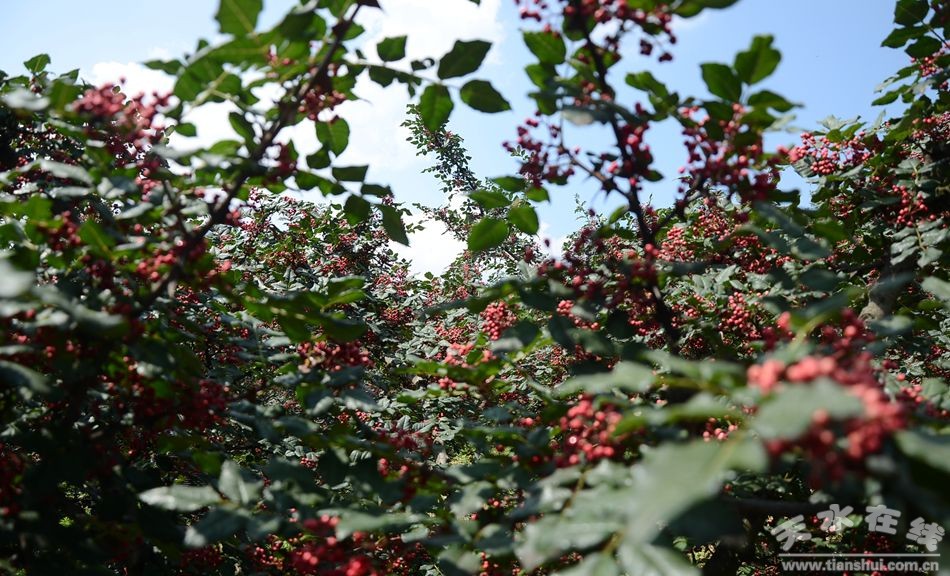 8月3日,筆者一行來到清水縣山門鎮(zhèn)玄頭村,在這里,我們欣喜的看到,這個偏僻的小山村在這個時節(jié)卻是熱鬧非凡,夏日的午后也沒有半點的寧靜,剛吃完午飯的人們紛紛背上背簍走出家門,急匆匆的奔向各自花椒園,不知疲倦的開始摘椒了。站在玄頭村頭向遠處望去,滿山滿坡都是掛滿紅紅果實的花椒樹,采摘花椒的椒農穿梭期間,場面煞是壯觀。