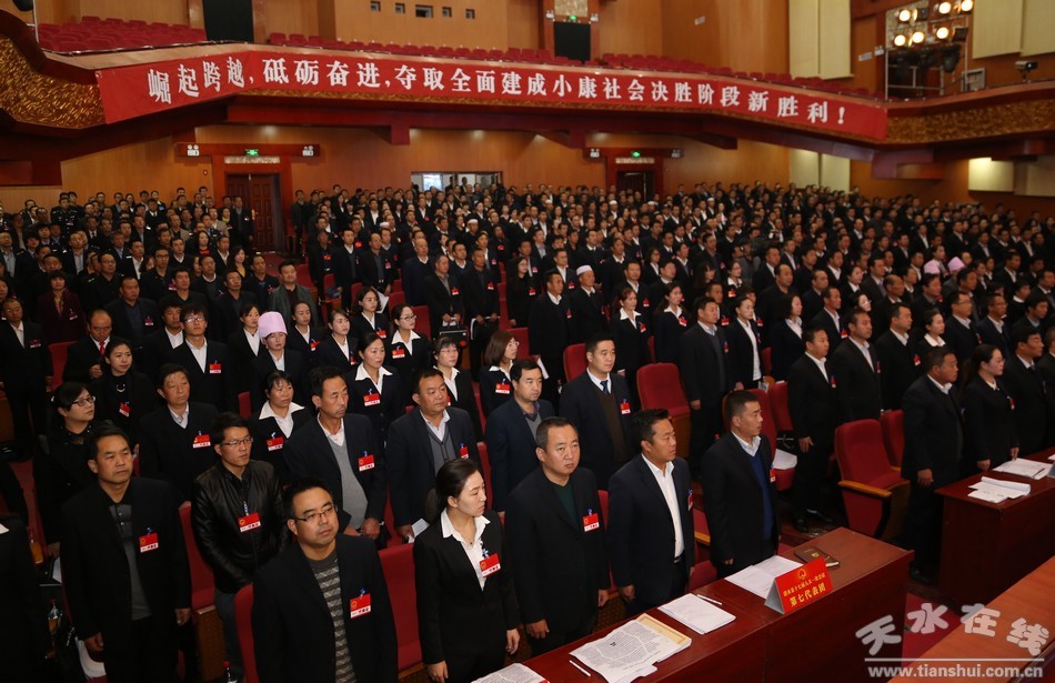 大會(huì)主席臺(tái)帷幕中央國(guó)徽高懸,會(huì)場(chǎng)氣氛隆重?zé)崃。?lái)自全縣各行各業(yè)、各條戰(zhàn)線的人大代表會(huì)聚一堂,為清水崛起跨越發(fā)展,全面建成小康社會(huì)謀創(chuàng)新之舉,建睿智直言,獻(xiàn)務(wù)實(shí)之策。