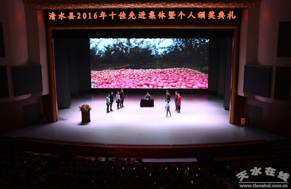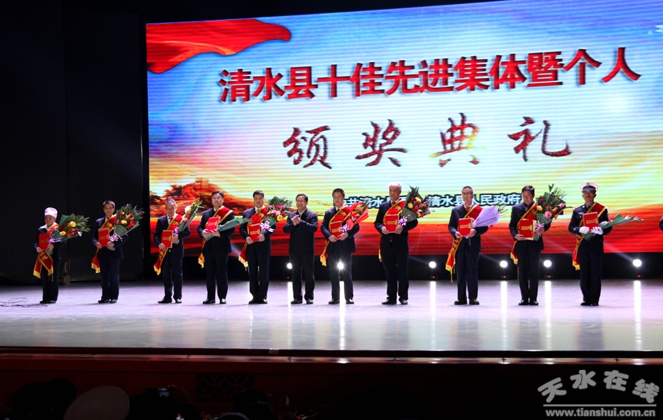 1月18日下午,清水縣隆重舉行2016年“十佳先進(jìn)集體暨個(gè)人”表彰大會(huì)暨頒獎(jiǎng)典禮,對(duì)評(píng)選出的“十佳勞動(dòng)模范”、“十佳醫(yī)護(hù)楷模”、“十佳平安衛(wèi)士”、“十佳最美教師”、“十佳美麗鄉(xiāng)村”、“十佳愛(ài)心人士”、“十佳創(chuàng)業(yè)(產(chǎn)業(yè))先鋒”、“十佳賢惠媳婦”、“十佳孝心少年”、 “十佳清水好人”共122個(gè)群眾公認(rèn)、在全縣經(jīng)濟(jì)社會(huì)發(fā)展中做出突出貢獻(xiàn)的先進(jìn)集體及個(gè)人頒發(fā)了獎(jiǎng)牌和榮譽(yù)證書(shū)。這是縣委、縣政府貫徹落實(shí)黨的十八大和十八屆三中、四中、五中、六中全會(huì)精神和深入踐行社會(huì)主義核心價(jià)值觀的重要舉措,對(duì)于大力弘揚(yáng)先進(jìn)集體及個(gè)人的高尚情操、感人情懷和先進(jìn)事跡,激發(fā)全縣人民熱愛(ài)家鄉(xiāng)、建設(shè)家鄉(xiāng)的熱情和斗志,創(chuàng)建全國(guó)文明城市都具有十分重要而深遠(yuǎn)的意義。