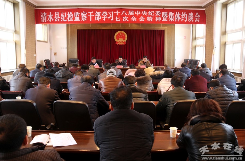 1月20日,清水縣召開紀(jì)檢監(jiān)察干部學(xué)習(xí)十八屆中央紀(jì)委七次全會(huì)精神暨集體約談會(huì)。縣委常委、縣紀(jì)委書記馬利民出席會(huì)議并講話。18鄉(xiāng)鎮(zhèn)紀(jì)委書記、紀(jì)委副書記,縣直各部門、各單位紀(jì)委書記(紀(jì)檢組長),縣紀(jì)委全體干部參加了集體學(xué)習(xí)暨集體約談會(huì)。