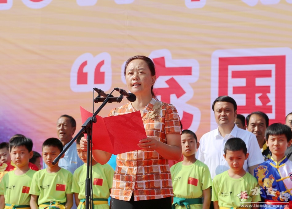 縣人大常委會主任周偉東與廣大群眾一起觀看了武術(shù)表演,縣委常委、宣傳部長盧芳作了致辭,天水市武術(shù)協(xié)會主席李森林主持本次展演。本次展演由中共清水縣委、清水縣人民政府主辦,天水市體育局、清水縣教體局、天水市武術(shù)協(xié)會共同承辦。