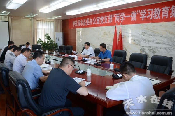 8月14日下午,中共清水縣委辦公室黨支部開展“兩學(xué)一做”學(xué)習(xí)教育暨第八次“黨員固定活動日”活動,組織學(xué)習(xí)習(xí)近平總書記在省部級主要領(lǐng)導(dǎo)干部專題研討班開班儀式上的重要講話精神;學(xué)習(xí)了人民日報(bào)評論員文章;學(xué)習(xí)了廣東省機(jī)要局趙鯤同志的先進(jìn)事跡;部分黨員干部還作了交流發(fā)言。學(xué)習(xí)當(dāng)中,集體觀看了專題教育片《做合格黨員》第六講和第七講,并在現(xiàn)場繳納了黨費(fèi)。