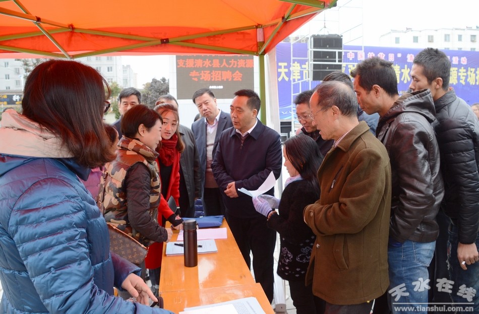 招聘會上,天津市河北區(qū)人社局副局長陳勇作了講話;清水縣委副書記王新強作了講話;縣委副書記仇金虎作了致辭;縣人社局局長趙升介紹有關(guān)情況。