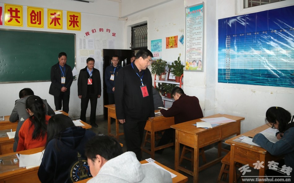 10月28日,天水市2017年事業(yè)單位公開招聘工作人員考試開考,清水縣考區(qū)在清水六中進(jìn)行。市人大常委會副主任、清水縣委書記劉天波,省、市巡視組成員,清水縣委常委、副縣長牛永禎,縣委常委、組織部長周濟(jì),縣人大常委會副主任趙愛平,縣政協(xié)副主席李應(yīng)祥到考場進(jìn)行了巡視。