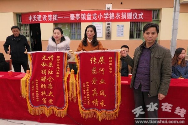 11月20日,清水縣在秦亭鎮(zhèn)盤龍小學隆重舉行中天建設(shè)集團---盤龍小學棉衣、文具愛心捐贈儀式。