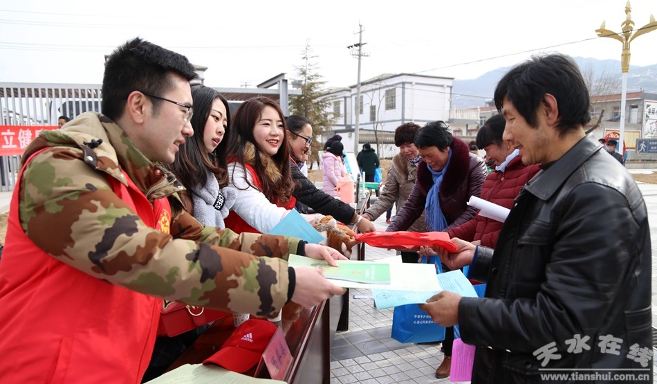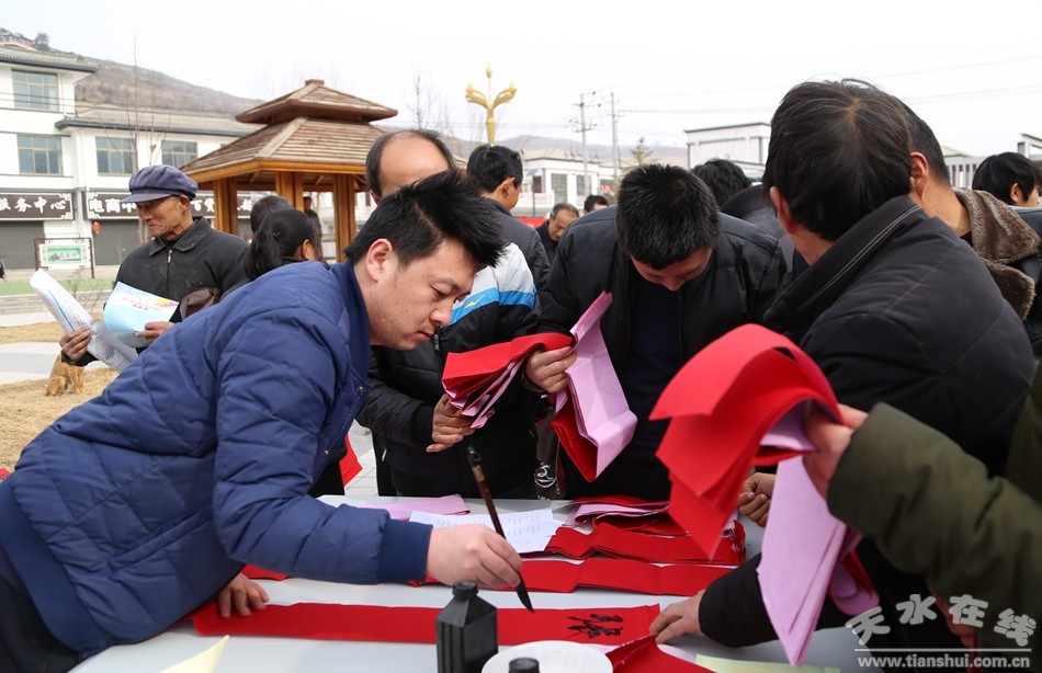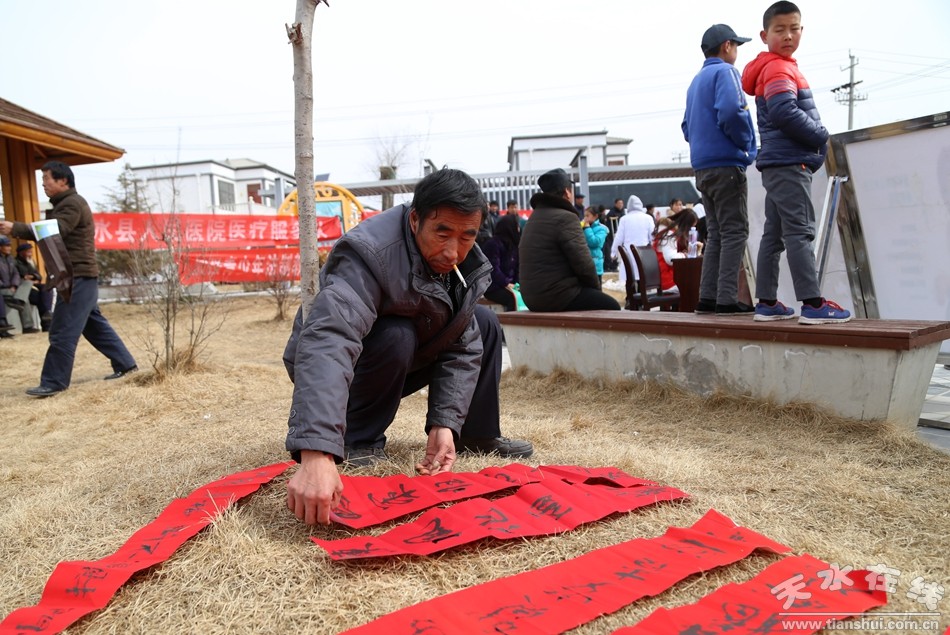 本次活動是清水縣2018年春節(jié)系列文化系列活動之一。當(dāng)天,“我的中國夢—文化進萬家”暨清水縣“紅色文藝輕騎兵”文化惠民演出活動還有“寫春聯(lián)·送春聯(lián)”、義珍、法律法規(guī)宣傳等活動。 在活動現(xiàn)場,人頭攢動,氣氛熱烈,來自縣醫(yī)院的醫(yī)生為廣大群眾號脈體檢,縣文明辦、縣婦聯(lián)、縣團委、縣交警隊等單位的工人員向群眾發(fā)放選傳資料,縣書法協(xié)會的書法家為群眾書寫春聯(lián),送上新春的祝福,營造了濃濃的年味。