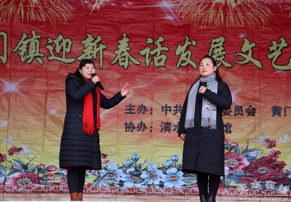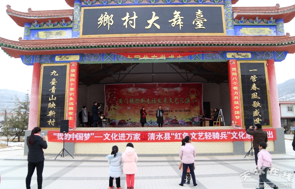 2月7日,“我的中國夢—文化進萬家”暨清水縣“紅色文藝輕騎兵”文化惠民演出活動走進黃門鎮(zhèn),為全鎮(zhèn)群眾奉獻了一場豐富多彩的文化大餐。在當(dāng)天的活動中,來自縣劇團的秦腔表演家用人民群眾喜聞樂見的文藝表演形式全面貫徹落實黨的十九大精神,精彩節(jié)目不時博得陣陣掌聲,為廣大群眾脫貧致富奔小康鼓足了信心。