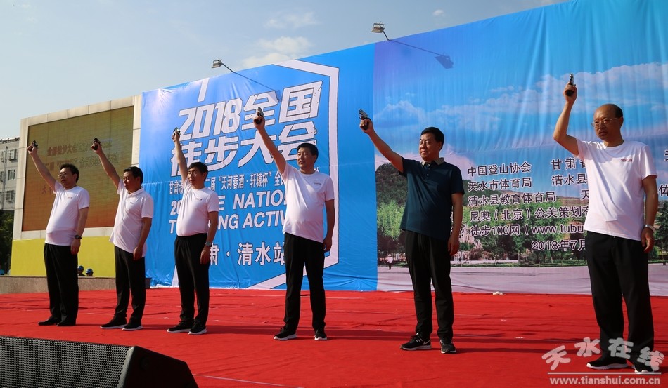 (國(guó)家體育總局登山運(yùn)動(dòng)管理中心戶外部副主任薛云,天水市人大常委會(huì)副主任、清水縣委書(shū)記劉天波,天水市政府黨組成員逯克宗,甘肅省體育局政策法規(guī)處處長(zhǎng)靳曉軍,清水縣委副書(shū)記、縣長(zhǎng)馬越垠,甘肅昊峰集團(tuán)董事長(zhǎng)程俊峰為活動(dòng)鳴槍發(fā)令。)