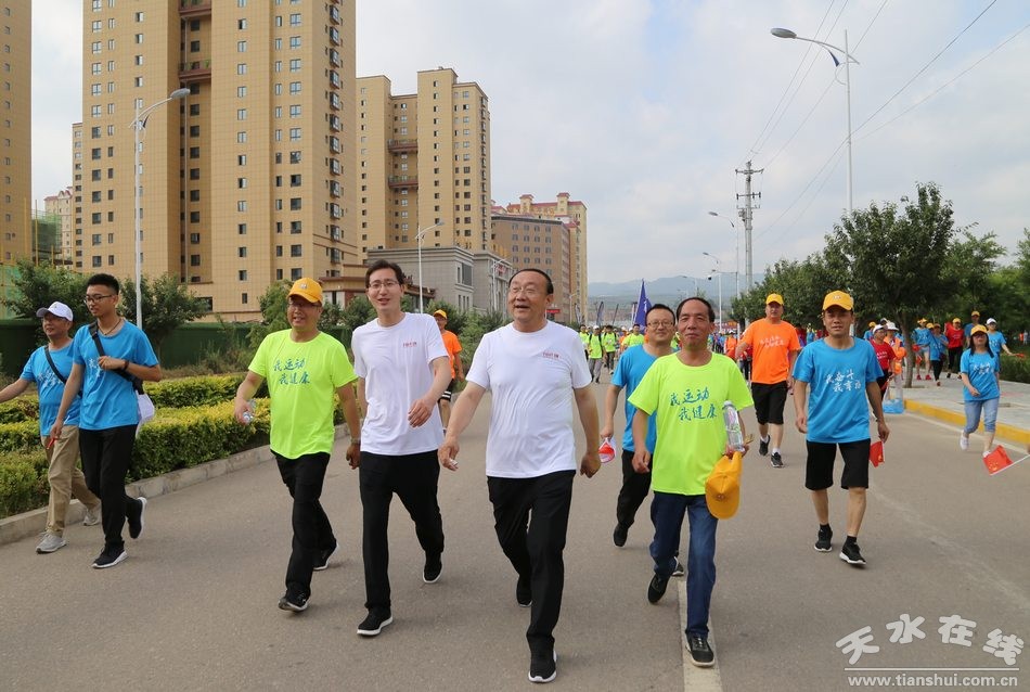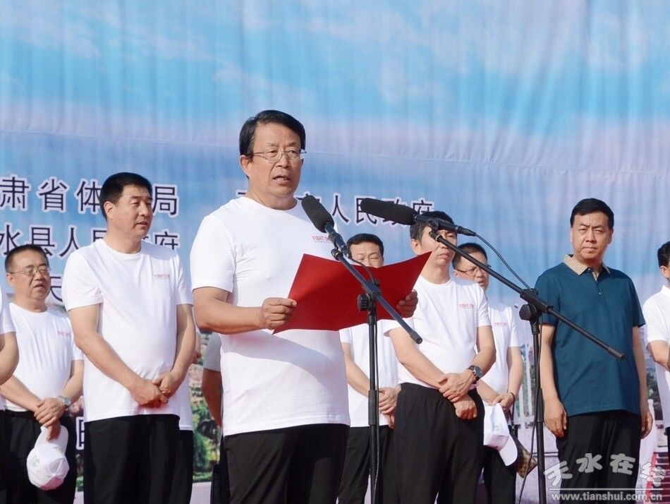 劉天波說(shuō),近年來(lái),清水縣委、縣政府認(rèn)真貫徹習(xí)近平總書(shū)記關(guān)于廣泛開(kāi)展全民健身活動(dòng)的重要指示精神,建設(shè)全民健身公園,舉辦形式多樣的全民健身活動(dòng),大力推行中小學(xué)陽(yáng)光體育大課間活動(dòng),“我運(yùn)動(dòng)我健康”的理念深入人心。全民健步走活動(dòng)是推動(dòng)全面健身的最佳載體之一。本次活動(dòng)的舉辦,是我縣近年來(lái)承辦的規(guī)模最大、影響力最大的一次國(guó)家級(jí)體育活動(dòng),必將進(jìn)一步凝聚各方合力,引領(lǐng)清水全民健身新風(fēng)尚,推動(dòng)清水體育運(yùn)動(dòng)事業(yè)大發(fā)展。各位徒步走愛(ài)好者要發(fā)揚(yáng)重在參與、自強(qiáng)不息、頑強(qiáng)拼搏的體育精神,挑戰(zhàn)自我,超越自我,用力量和激情演繹一場(chǎng)精彩的健步走盛宴。全縣廣大干部群眾要走出家門(mén),走向室外,健步走向健康,闊步奔向小康,用健康的體魄為建設(shè)幸福美好新清水做出應(yīng)有貢獻(xiàn)。