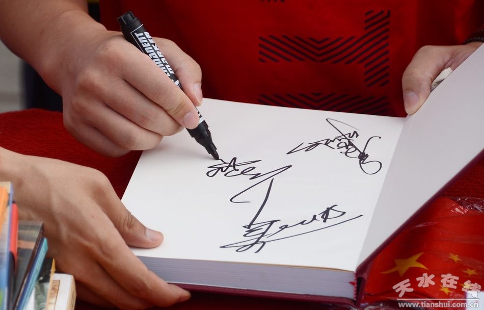 來自黃門鎮(zhèn)小河村的孤兒王巖家境十分困難,但是他一直勤奮學(xué)習(xí),考上了大學(xué);李敏、李文慧父親去世,靠母親一人含辛茹苦供給上天水一中,今年高考中,姐妹倆以567、564分的高分上了重點線......。聆聽了五位困難學(xué)生的講述,趙蕊蕊、鄒凱、王麗萍深受感動,用擁抱的形式鼓勵孩子們要堅強樂觀,克服困難,勇敢面對挫折。同時,三位奧運冠軍在60本書和60個保溫杯上一一簽名,現(xiàn)場為貧困學(xué)生發(fā)放物資,暖心助力讓孩子們深受鼓舞。