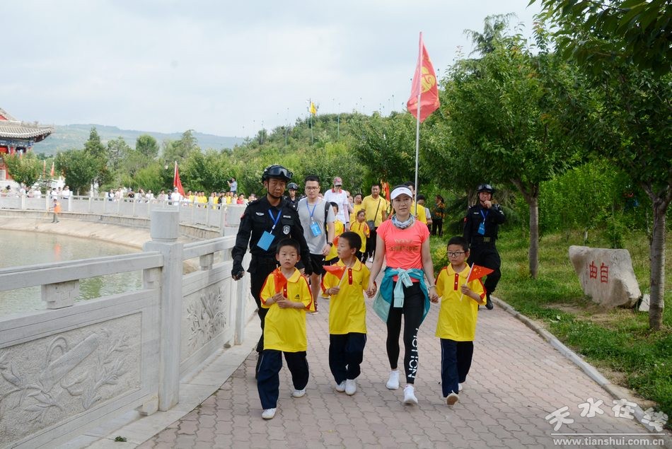 隨后,60名受資助的學(xué)生在奧運冠軍趙蕊蕊、鄒凱、王麗萍的領(lǐng)走下,從軒轅廣場出發(fā),沿軒轅橋進入美麗的軒轅湖,途經(jīng)軒轅祠、水車園行至軒轅大道,一路直達充國廣場。奧運冠軍以實際行動向貧困兒童傳遞陽光健康,積極向上、頑強拼搏的理念和更快、更高、更強的奧運精神,讓孩子們感受運動的快樂。