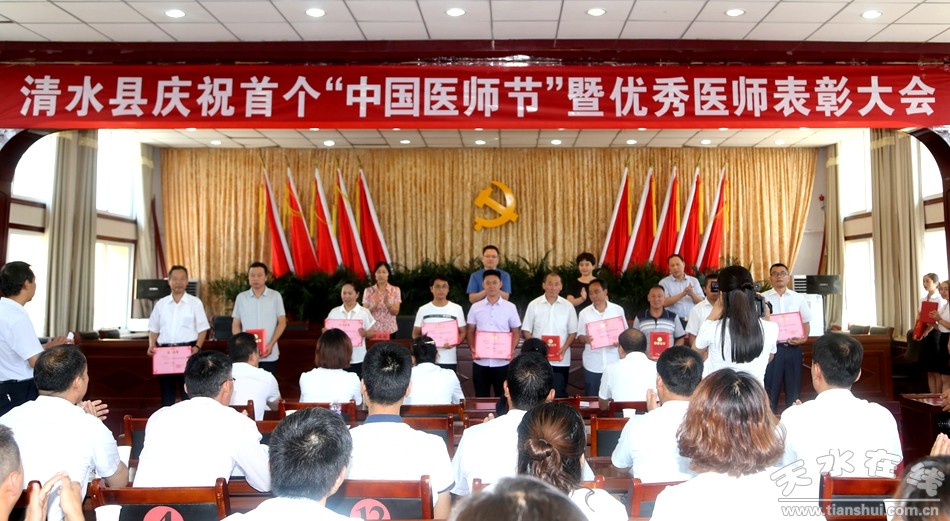8月19日,清水縣慶祝首個(gè)“中國(guó)醫(yī)師節(jié)”暨優(yōu)秀醫(yī)師表彰大會(huì)召開,熱烈慶祝首個(gè)“中國(guó)醫(yī)師節(jié)”,對(duì)全縣健康扶貧優(yōu)秀醫(yī)師、公共衛(wèi)生優(yōu)秀醫(yī)師和醫(yī)德醫(yī)風(fēng)優(yōu)秀醫(yī)師進(jìn)行隆重表彰。市人大常委會(huì)副主任、清水縣委書記劉天波對(duì)慶祝首個(gè)“中國(guó)醫(yī)師節(jié)”作出批示,向全縣廣大醫(yī)師和醫(yī)務(wù)工作者致以節(jié)日問(wèn)候,向受到表彰的優(yōu)秀醫(yī)師表示祝賀,對(duì)廣大醫(yī)務(wù)工作者和全縣衛(wèi)生與健康工作提出了新要求。