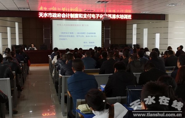 為了推進清水縣國庫集中支付制度深化改革,進一步規(guī)范會計核算管理和國庫集中支付電子化。10月18日至20日,清水縣邀請西安工程大學管理學院會計系副教授宋玉和蘭州光景信息服務有限公司軟件高級工程師胡軍權在縣第三中學舉辦了為期三天的天水市政府會計制度和電子化支付改革清水培訓班。各預算單位會計、財政所和財政局全體人員共計300多人參加培訓。