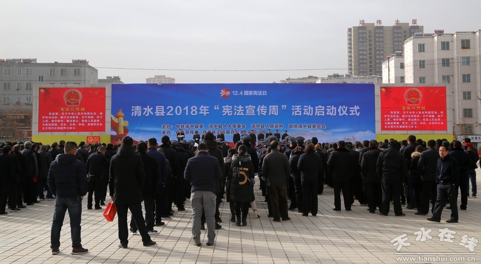 12月4日是第五個(gè)國(guó)家憲法日,清水縣2018年“憲法宣傳周”啟動(dòng)儀式在軒轅廣場(chǎng)舉行。啟動(dòng)儀式上,清水縣組織黨群組織及國(guó)家機(jī)關(guān)工作人員500多人舉行了《憲法》宣誓,深入貫徹落實(shí)習(xí)近平總書記全面依法治國(guó)新理念新思想新戰(zhàn)略,進(jìn)一步尊崇憲法、學(xué)習(xí)憲法、遵守憲法、維護(hù)憲法、運(yùn)用憲法。