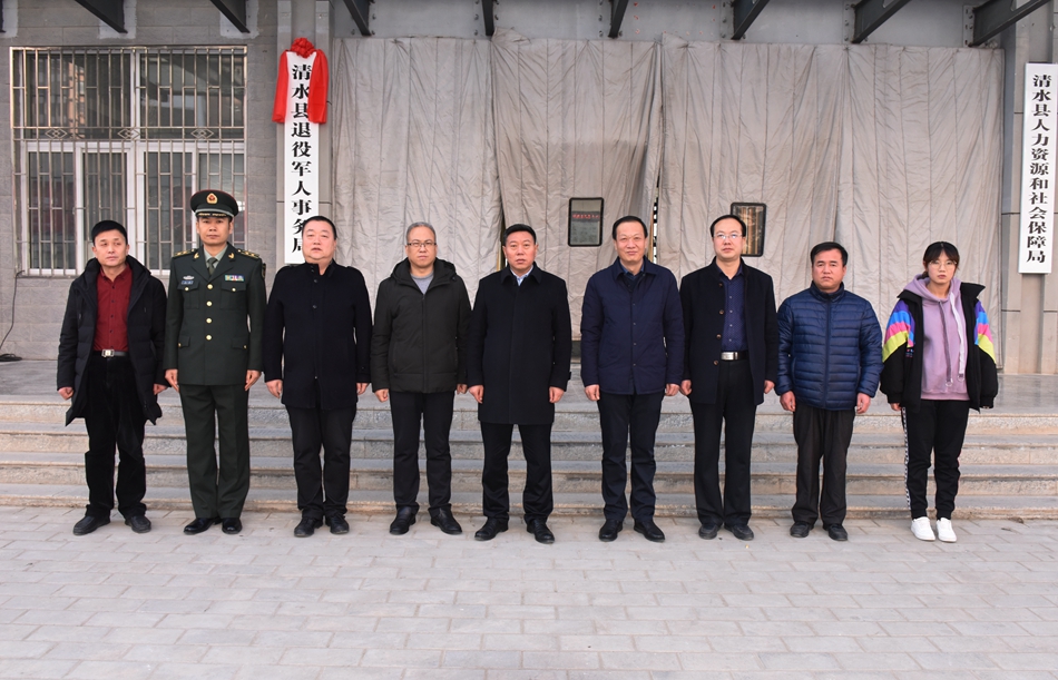 12月17日,新組建的清水縣退役軍人事務(wù)局召開干部職工會(huì)議,宣布縣委的任職決定。縣委副書記、縣長馬越垠,縣委常委、副縣長牛永禎,縣委常委、政法委書記秦永斌,縣人武部政委王召出席會(huì)議。會(huì)后,縣委副書記、縣長馬越垠為清水縣退役軍人事務(wù)局揭牌。