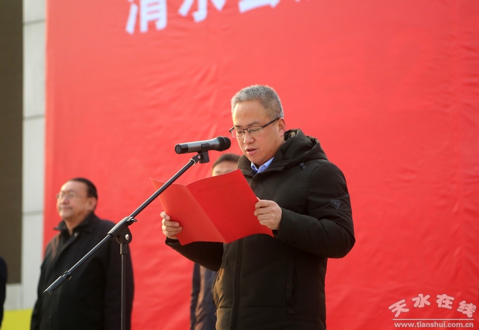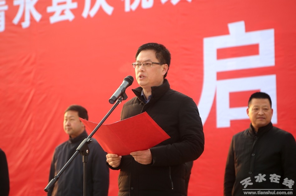 (市人大常委會副主任、清水縣委書記劉天波宣布“清水縣慶祝改革開放40周年暨新年登高全民健身徒步走活動”開始)