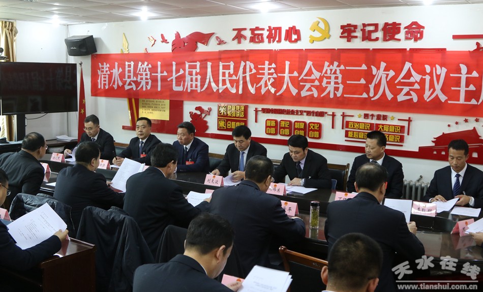 1月7日下午,清水縣第十七屆人民代表大會(huì)第三次會(huì)議舉行主席團(tuán)第一次會(huì)議?h人大常委會(huì)主任周偉東主持會(huì)議。