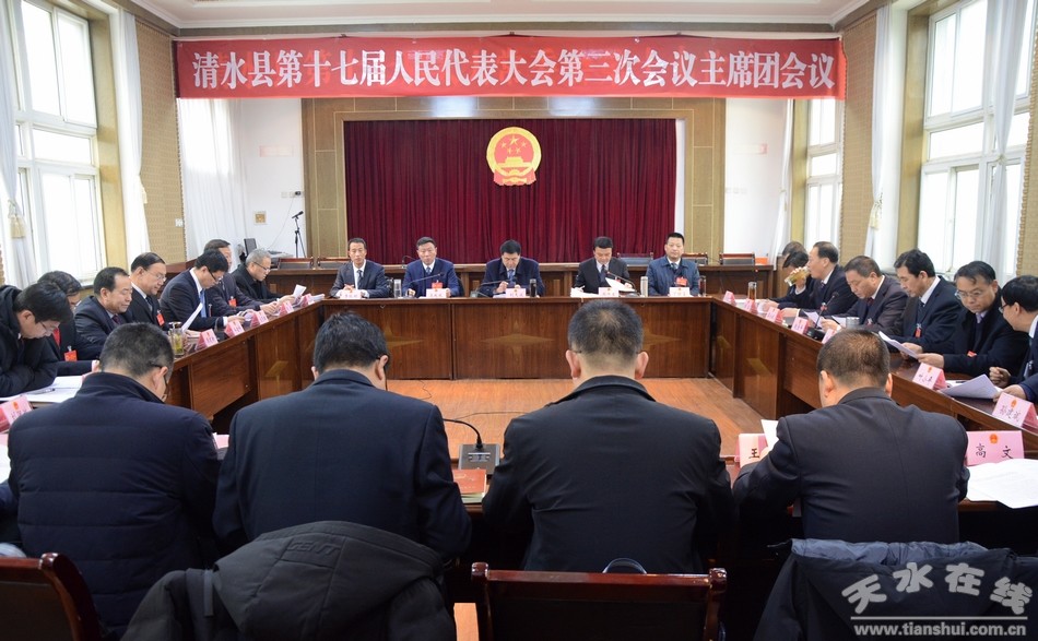 1月10日上午,清水縣第十七屆人民代表大會第三次會議舉行主席團第三次會議,縣人大常委會主任周偉東主持會議。