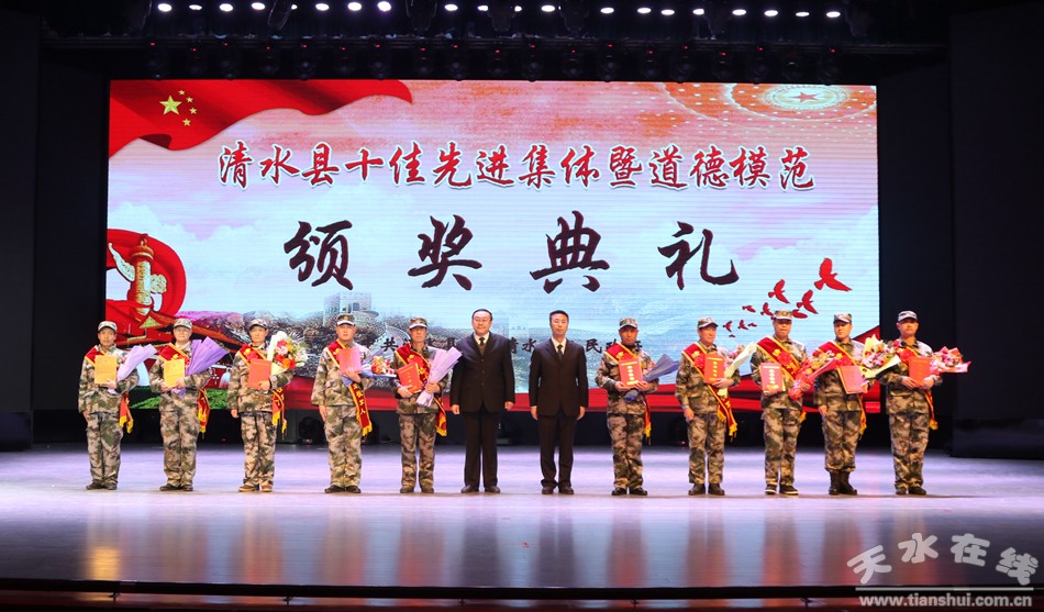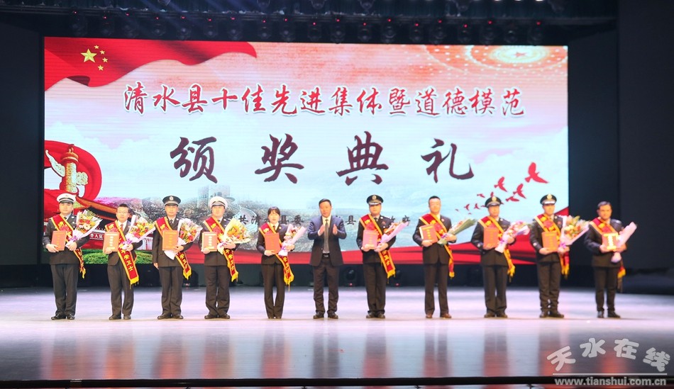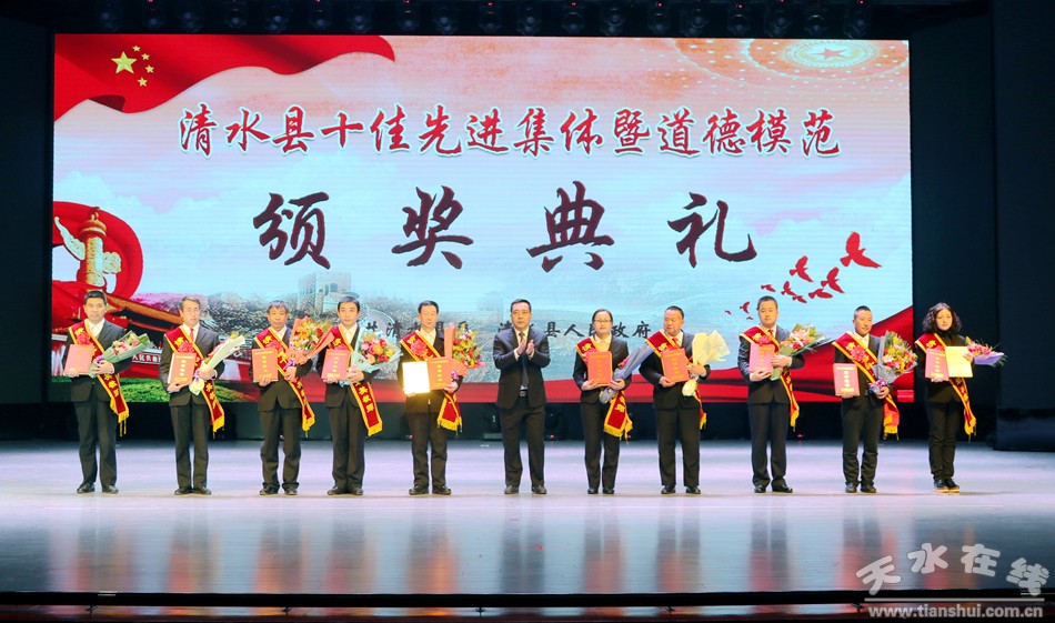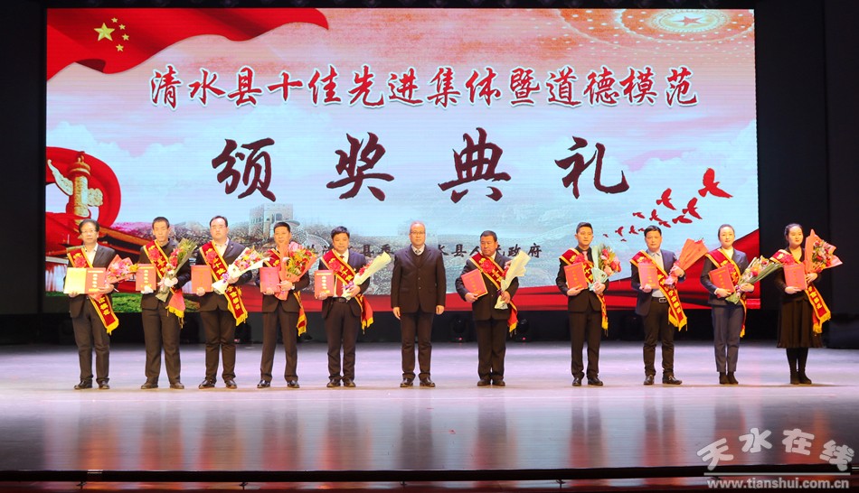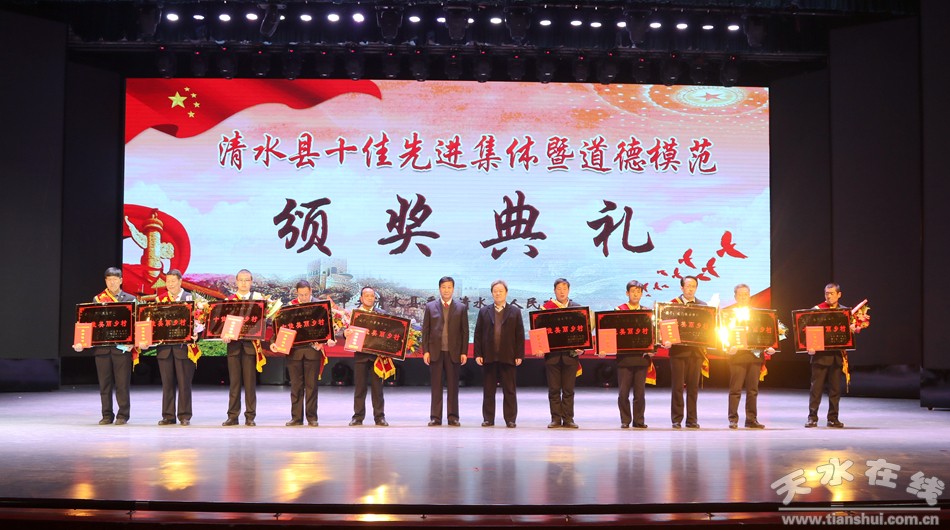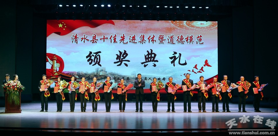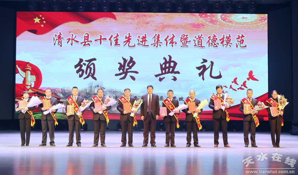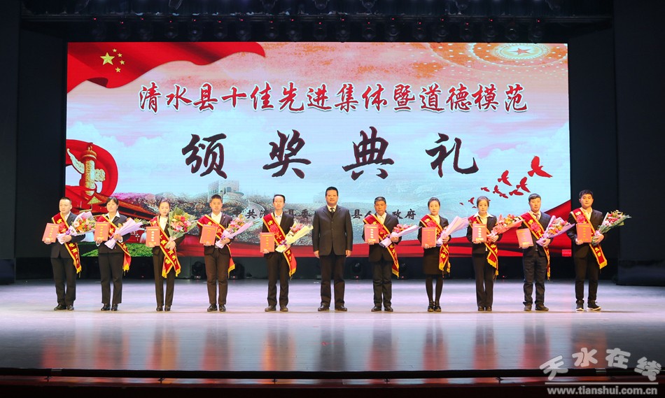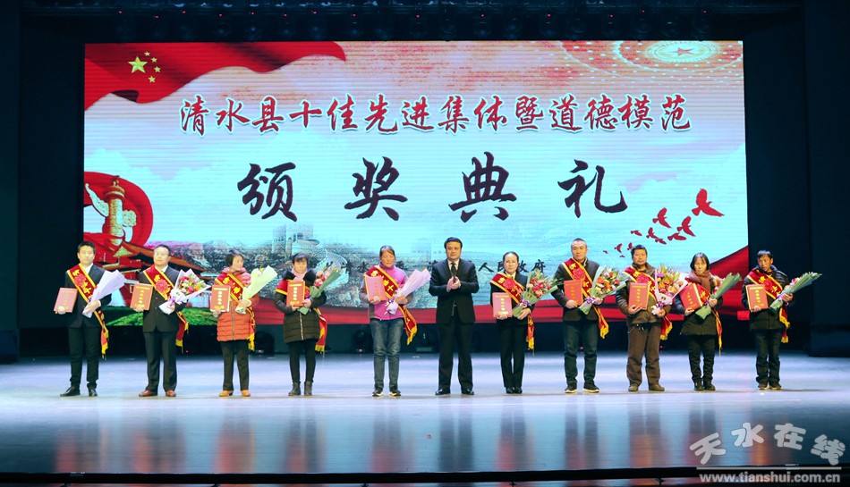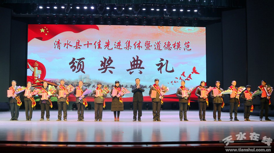 1月18日下午,清水縣隆重舉行2018年度十佳先進(jìn)集體暨道德模范頒獎(jiǎng)典禮,對(duì)評(píng)選出的十佳勞動(dòng)模范、十佳清水好人、十佳平安衛(wèi)士、十佳電商先鋒、十佳最美教師、十佳醫(yī)護(hù)楷模、十佳誠實(shí)守信模范、十佳重視教育家庭、十佳愛心人士(企業(yè))、十佳賢惠媳婦、十佳孝心少年、十佳最美退役軍人、十佳美麗鄉(xiāng)村、十佳文明校園、十佳文明家庭進(jìn)行隆重表彰,激勵(lì)全縣黨員干部群眾以先進(jìn)典型為榜樣,銳意進(jìn)取、攻堅(jiān)克難,以更加奮發(fā)有為的精神狀態(tài)投身到打贏脫貧攻堅(jiān)戰(zhàn)、實(shí)施鄉(xiāng)村振興戰(zhàn)略、建設(shè)幸福美好新清水的火熱實(shí)踐。