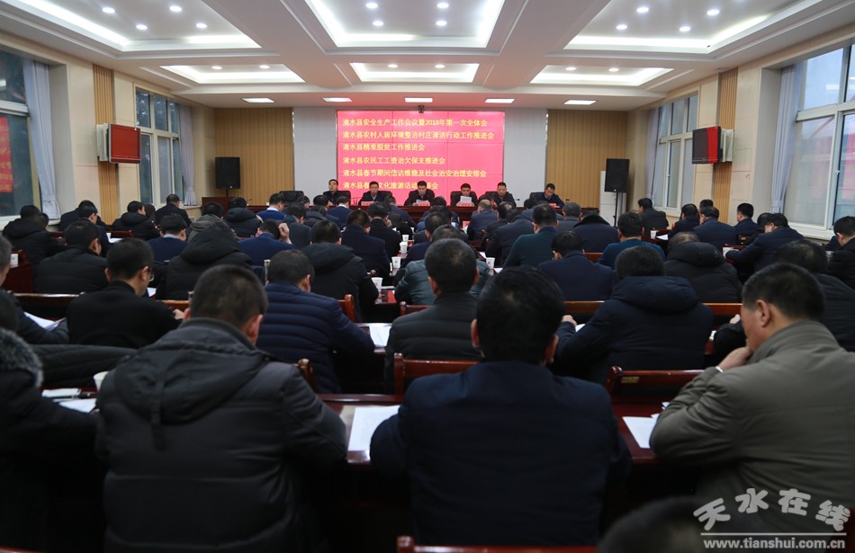 1月24日下午,清水縣以視頻會(huì)議的方式召開縣安委會(huì)2019年第一次全體會(huì)議暨當(dāng)前重點(diǎn)工作安排會(huì),對(duì)2019年安全生產(chǎn)工作和當(dāng)前農(nóng)村人居環(huán)境整治村莊清潔行動(dòng)、春節(jié)文化旅游活動(dòng)、迎接省上脫貧攻堅(jiān)成效考核、農(nóng)民工工資治欠保支、信訪維穩(wěn)和社會(huì)治安等工作進(jìn)行了全面安排部署,確保全縣人民過一個(gè)干凈整潔、平安有序、喜慶祥和的春節(jié)。