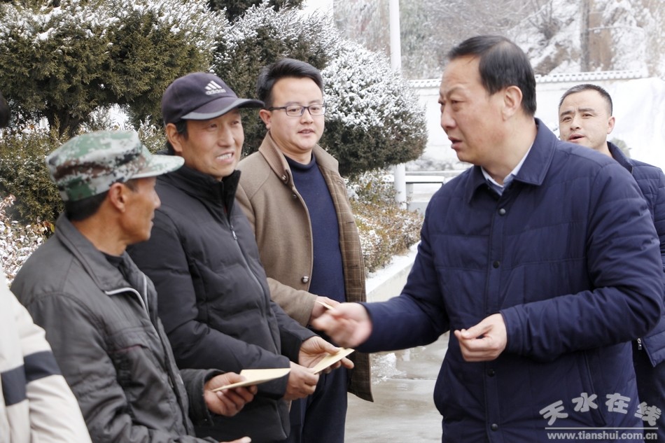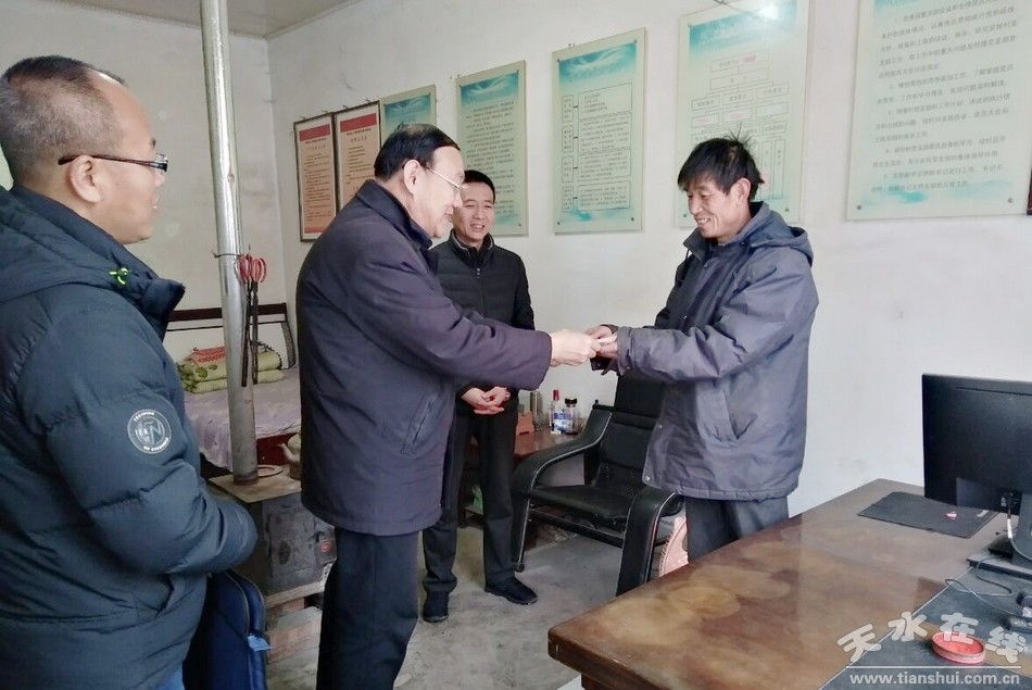 眼下,春節(jié)臨近,還有兩三天就要過年了,清水縣各級駐村幫扶工作隊(duì)員仍然堅守在基層一線,為全面打贏打好脫貧攻堅站在不懈努力,為進(jìn)一步激發(fā)基層扶貧干部助力脫貧攻堅工作動力,充分調(diào)動扶貧干部奮戰(zhàn)脫貧攻堅工作的積極性。近日,清水縣四大組織領(lǐng)導(dǎo)冒著風(fēng)雪嚴(yán)寒看望慰問仍然堅守在基層一線的廣大脫貧攻堅駐村幫扶干部,給他們送去了黨的關(guān)懷和新春的祝福。
