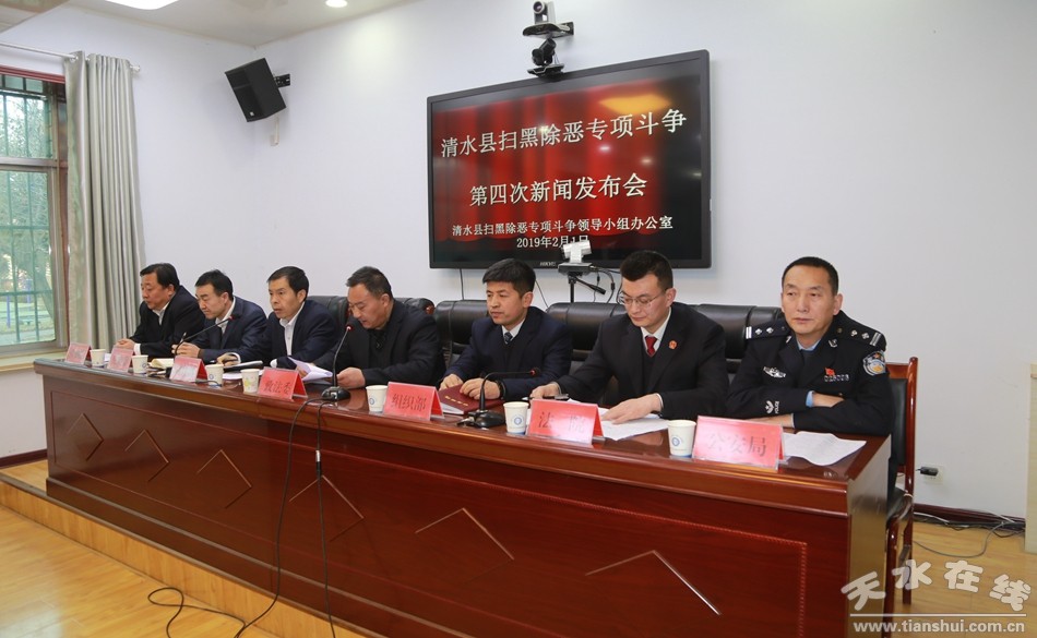 2月1日下午,清水縣掃黑除惡專項斗爭第四次新聞發(fā)布會召開。會上,縣委政法委通報了全縣掃黑除惡專項斗爭最新進(jìn)展情況并對下一步工作進(jìn)行安排部署;在記者提問環(huán)節(jié),縣紀(jì)委、縣委組織部、縣公安局、縣法院、縣檢察院等部門圍繞掃黑除惡專項斗爭如何開展重點工作等進(jìn)行了解答。