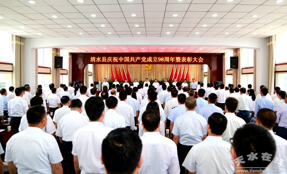 6月27日上午,清水縣召開慶祝中國共產(chǎn)黨成立98周年暨表彰大會,緬懷黨的光輝歷程,回顧總結(jié)黨的十八大以來全縣在推進黨的建設(shè)、踐行黨的組織路線等方面取得的新成就,客觀分析從嚴治黨新形勢下黨的建設(shè)面臨的困難和問題,安排部署當(dāng)前和今后一個時期黨的建設(shè)的重大任務(wù),隆重表彰在全縣各條戰(zhàn)線上涌現(xiàn)出的一批先進基層黨組織、優(yōu)秀共產(chǎn)黨員和優(yōu)秀黨務(wù)工作者,進一步激發(fā)和動員全縣各級黨組織和廣大黨員干部提振信心,奮力拼搏,攻堅克難,真抓實干,為實現(xiàn)整縣“脫貧摘帽”目標(biāo)、全面建成小康社會作出新的更大的貢獻。