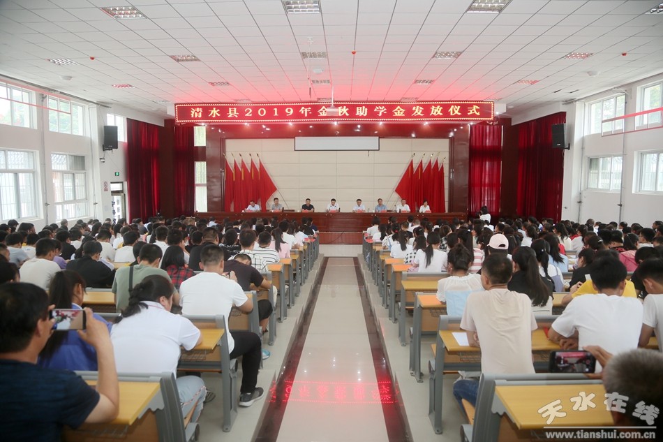 8月19下午,清水縣舉行2019年“金秋助學(xué)金”發(fā)放儀式,為即將邁入高等院校的355名家貧志堅(jiān)、品學(xué)兼優(yōu)的大學(xué)生發(fā)放助學(xué)金,幫助貧困大學(xué)生順利完成學(xué)業(yè)。