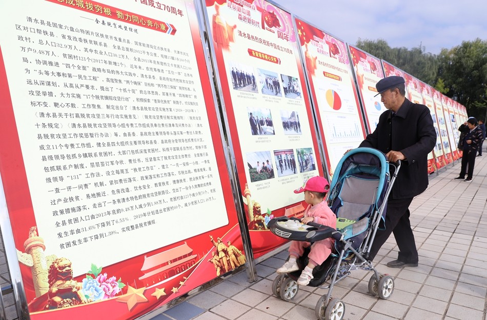 9月26日,清水縣在軒轅廣場(chǎng)舉行慶祝新中國(guó)成立70周年經(jīng)濟(jì)社會(huì)發(fā)展暨脫貧攻堅(jiān)輝煌成就展開(kāi)展儀式,全面展示70年來(lái)全縣經(jīng)濟(jì)社會(huì)發(fā)展取得的成就和干部群眾奮斗追夢(mèng)的良好精神狀態(tài),進(jìn)一步激發(fā)全縣上下愛(ài)黨愛(ài)國(guó)的真摯情感。