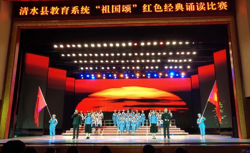 9月24日,清水縣教育系統(tǒng)在軒轅大劇院舉行“祖國(guó)頌”紅色經(jīng)典誦讀比賽,慶祝中華人民共和國(guó)成立70周年。