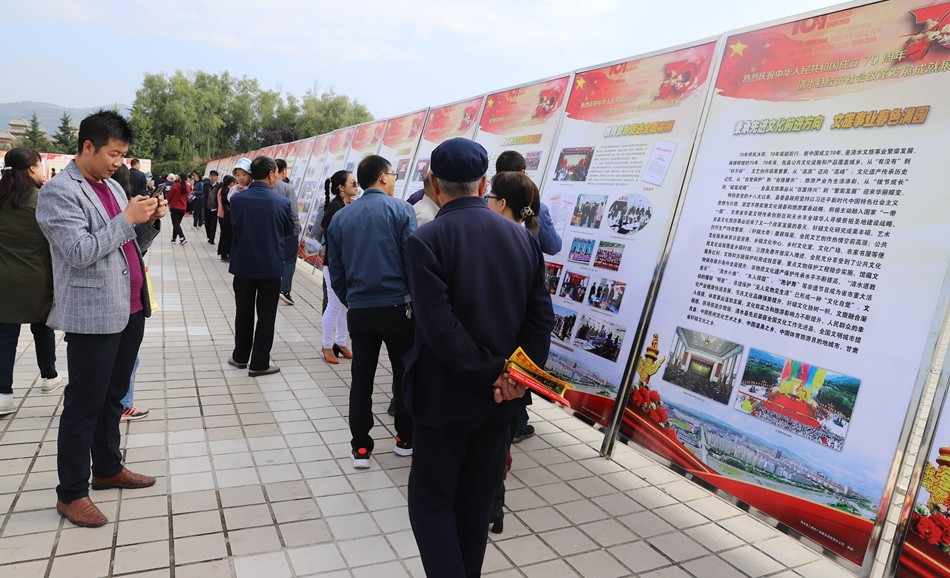 9月26日,清水縣慶祝中華人民共和國成立70周年經(jīng)濟社會發(fā)展暨脫貧攻堅輝煌成就展在軒轅廣場展出,展覽吸引了社會各界的關注,人們踴躍參觀,感受中華人民共和國成立70年來清水縣委、縣政府團結(jié)帶領全縣人民發(fā)憤圖強、艱苦奮斗實現(xiàn)的偉大跨越。