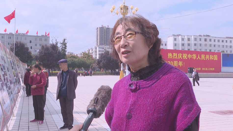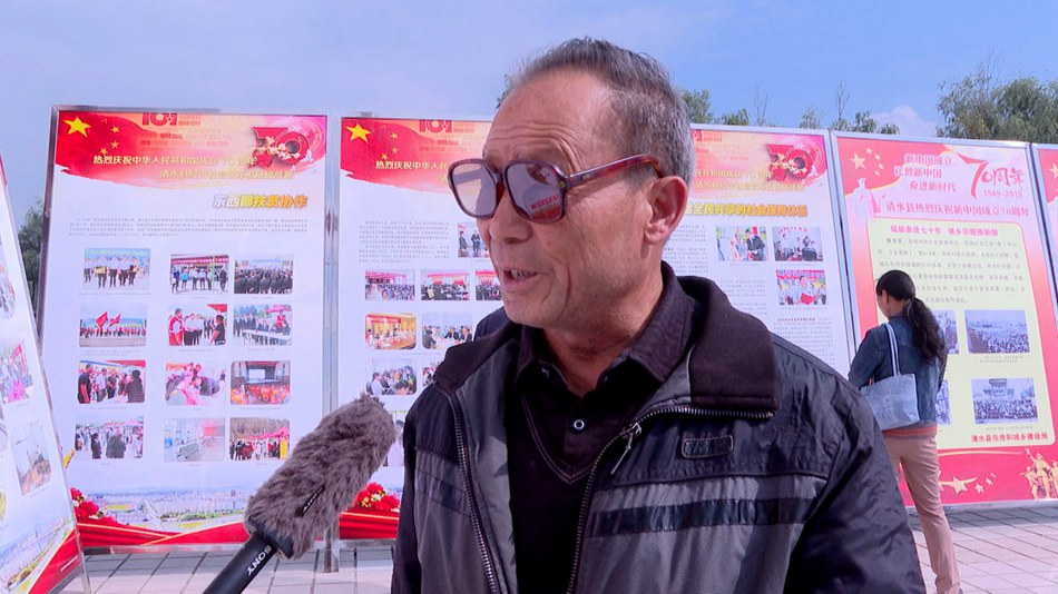 清水縣扶貧辦干部劉應忠:“今天我們參觀了我縣慶祝中華人民共和國成立70周年成就展,看到了我們清水縣70年以來的一點一滴的變化,特別震撼,在今后的工作中,我們必將更加努力,把我們清水縣建設的更加美好。”