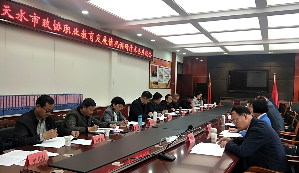 10月9日下午,政協(xié)天水市委員會黨組書記、主席張明泰,副主席蘇定武、屈光平帶領部分市政協(xié)常委、委員來清水縣調研職業(yè)教育發(fā)展情況。清水縣政協(xié)黨組書記、主席丁旺喜,副縣長安偉,縣政協(xié)副主席曹鳳娥陪同調研。
