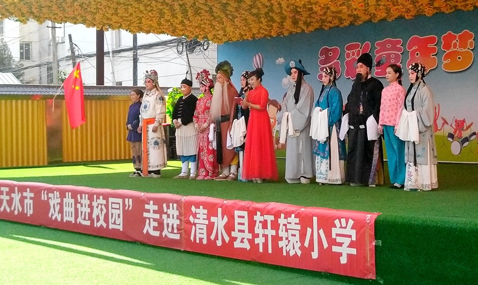 近日,天水市“戲曲進(jìn)校園”活動(dòng)走進(jìn)清水縣軒轅小學(xué),藝術(shù)家們結(jié)合實(shí)際,為全校師生展示了生、旦、凈、末、丑各種形式的表演,將秦腔藝術(shù)的精髓表演的淋漓盡致。