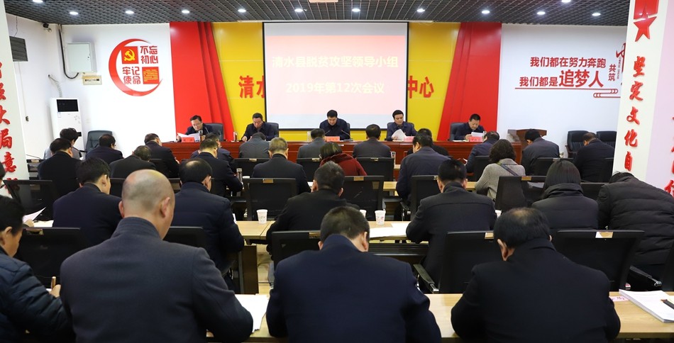 11月19日,市人大常委會(huì)副主任、清水縣委書(shū)記劉天波主持召開(kāi)清水縣脫貧攻堅(jiān)領(lǐng)導(dǎo)小組2019年第12次會(huì)議,周偉東、馬越垠、丁旺喜等四大組織在家領(lǐng)導(dǎo)出席會(huì)議,縣脫貧攻堅(jiān)領(lǐng)導(dǎo)小組成員單位負(fù)責(zé)人參加會(huì)議。會(huì)議傳達(dá)學(xué)習(xí)了胡春華副總理在甘肅調(diào)研脫貧攻堅(jiān)工作時(shí)的講話精神和天水市脫貧攻堅(jiān)領(lǐng)導(dǎo)小組2019年第八次會(huì)議精神;審議了《清水縣脫貧攻堅(jiān)總體情況報(bào)告》、《清水縣整縣退出摘帽自評(píng)結(jié)果的報(bào)告》、《清水縣2019年脫貧攻堅(jiān)工作總結(jié)報(bào)告》。