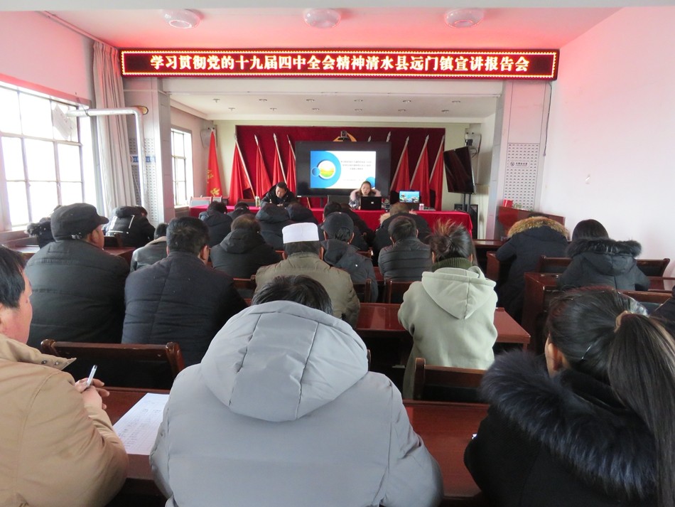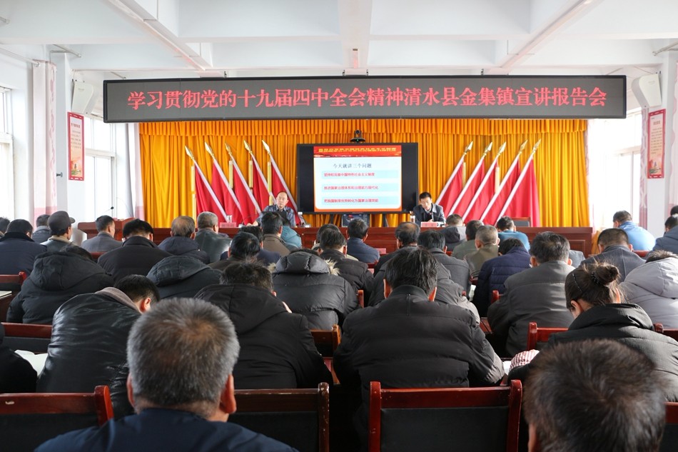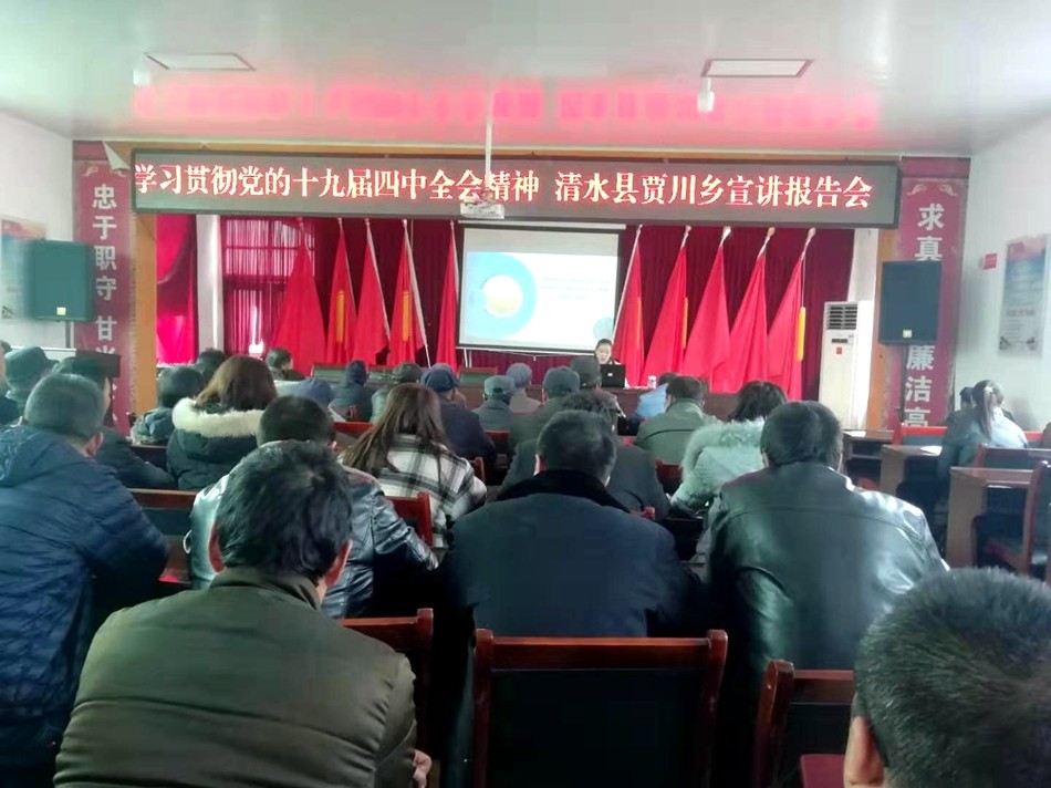 12月初以來,清水縣抽調(diào)政治素養(yǎng)好、理論水平高、宣講能力強的領(lǐng)導(dǎo)干部和黨校講師組建宣講團,分赴各鄉(xiāng)鎮(zhèn)開展四中全會精神理論宣講,實現(xiàn)對基層單位宣講全覆蓋。