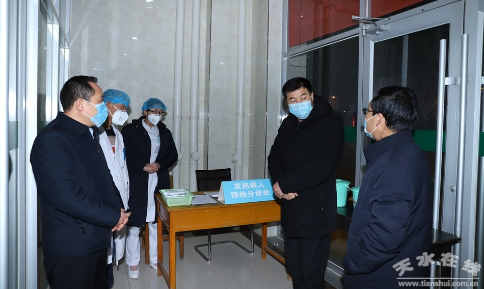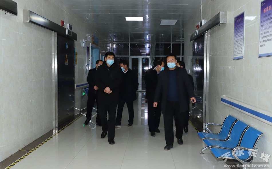 劉天波先后來(lái)到縣綜合值班室和縣醫(yī)院門診預(yù)檢分診、急診科、發(fā)熱門診等地詳細(xì)詢問(wèn)了疫情防控工作情況,實(shí)地查看了預(yù)檢分診制度落實(shí)、醫(yī)務(wù)人員個(gè)人防護(hù)、24小時(shí)值班值守等情況。他指出,縣人民醫(yī)院是省衛(wèi)生健康委確定的醫(yī)療救治定點(diǎn)醫(yī)院,是清水縣疫情排查、阻斷隔離、醫(yī)療救治的一線,大家要充分認(rèn)識(shí)當(dāng)前新型冠狀病毒肺炎防控嚴(yán)峻形勢(shì),盡最大努力做好應(yīng)急準(zhǔn)備工作,對(duì)可能出現(xiàn)的疫情要從病人接診、病情篩查、及時(shí)隔離救治、醫(yī)護(hù)力量配備、技術(shù)培訓(xùn)、醫(yī)護(hù)人員防護(hù)等方面嚴(yán)格執(zhí)行應(yīng)急預(yù)案,確保抗擊新型冠狀病毒感染的肺炎疫情各項(xiàng)防控措施落實(shí)到位。