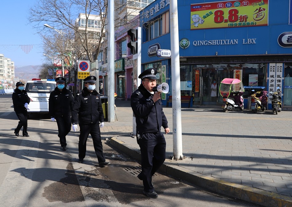 與此同時(shí),縣公安局民警在縣城各條道路上,勸導(dǎo)行人立即回家,不要外出,更不要聚集。
