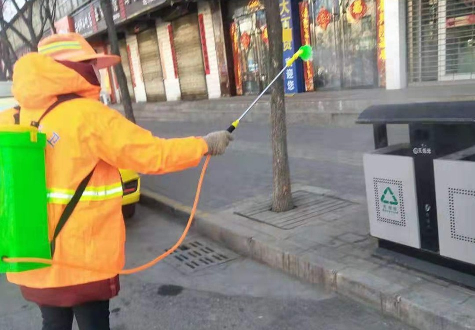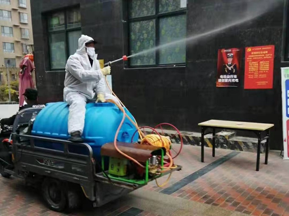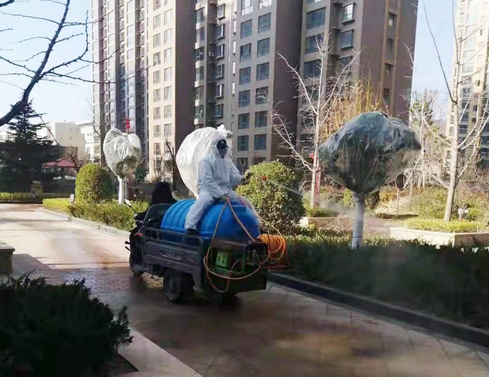 面對人力開展消殺效率低、進度慢的問題,縣住建部門發(fā)揮城區(qū)灑水車的作用,對城區(qū)主次干道開展大面積消毒殺菌,極大地提高了工作效率。小區(qū)公共區(qū)域面積大且大型灑水車難以開展作業(yè),住建局又改裝了一批小型灑水車,將小型三輪車、塑料水箱、抽水泵和高壓水槍合為一體,組裝成一臺大型噴霧器,提高了小區(qū)走道和巷道作業(yè)的靈活性,確保公共區(qū)域消殺工作無死角。