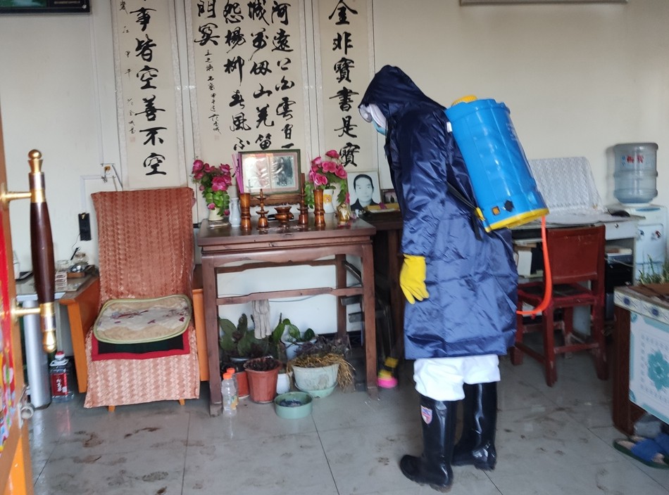 (清水縣疾控中心專業(yè)技術(shù)人員在密切接觸者等重點(diǎn)人員居住場所開展消毒)