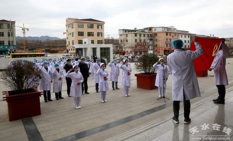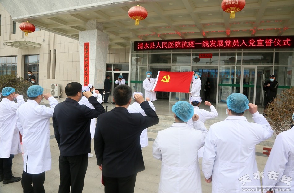 3月5日,清水縣人民醫(yī)院舉行戰(zhàn)疫一線發(fā)展黨員宣誓儀式,王露、周文娟、朱俊梅3名醫(yī)護(hù)人員獲批為中共預(yù)備黨員,面向黨旗宣誓。市人大常委會(huì)副主任,清水縣委書記劉天波出席宣誓儀式并為3名同志佩戴黨徽、發(fā)放《黨章》。