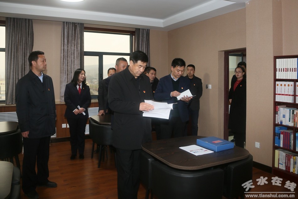 (在縣法院觀摩,查閱機(jī)關(guān)黨建文化建設(shè)資料)