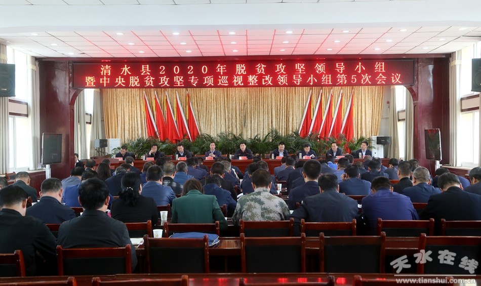5月11日,市人大常委會副主任、清水縣委書記劉天波主持召開縣脫貧攻堅(jiān)領(lǐng)導(dǎo)小組第5次會議暨中央脫貧攻堅(jiān)專項(xiàng)巡視整改領(lǐng)導(dǎo)小組第5次會議,深入學(xué)習(xí)貫徹習(xí)近平總書記重要講話精神,全面落實(shí)黨中央決策部署和省市部署安排,以時(shí)不我待的緊迫感全面加快推進(jìn)工作,較真碰硬整改各類問題,確保按期完成脫貧攻堅(jiān)任務(wù),確保脫貧攻堅(jiān)成色質(zhì)量,堅(jiān)決打贏脫貧攻堅(jiān)收官之戰(zhàn)。