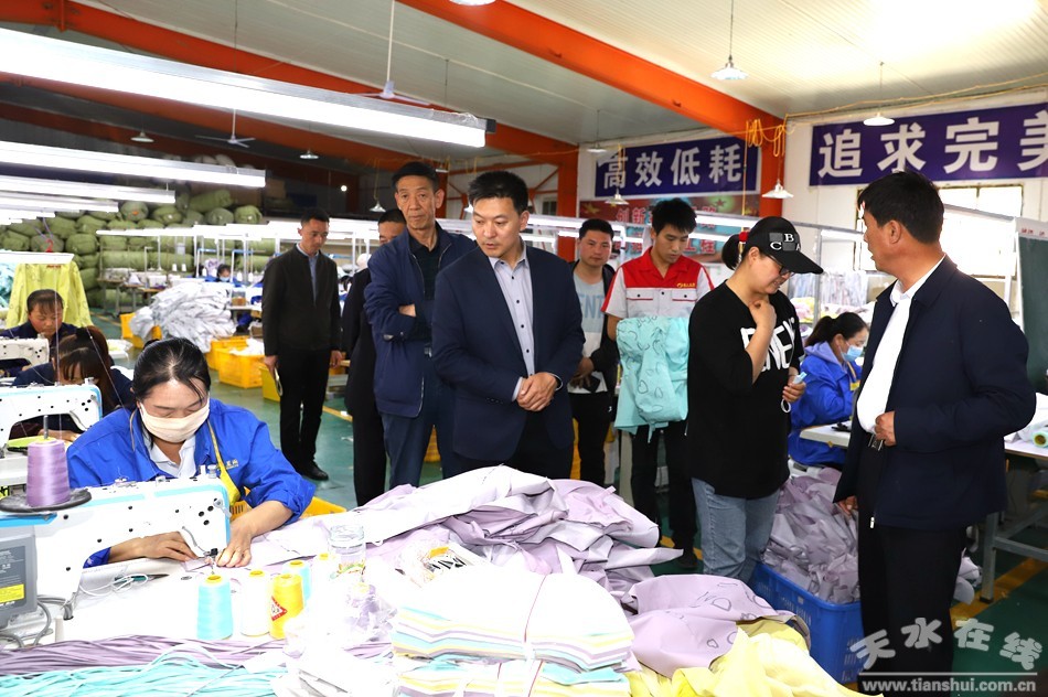 在與非凡服裝加工“扶貧車間”,張鋮和車間負責人親切交談,詳細了解“扶貧車間”的生產(chǎn)、經(jīng)營情況,勉勵負責人實事求是、因地制宜,把“扶貧車間”做大做強,建設符合清水經(jīng)濟發(fā)展的扶貧車間,吸納更多貧困戶參與進來。