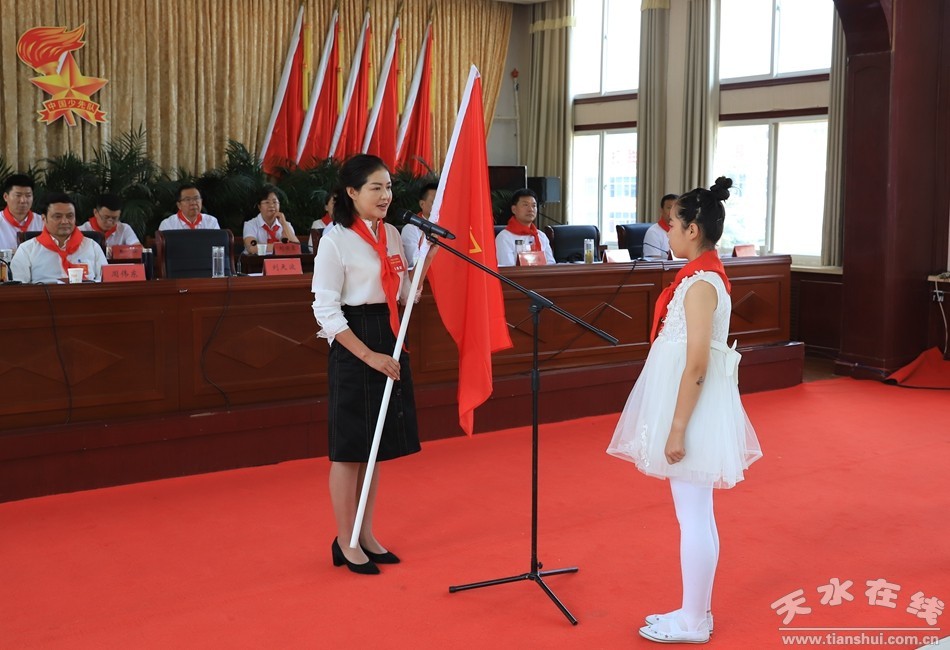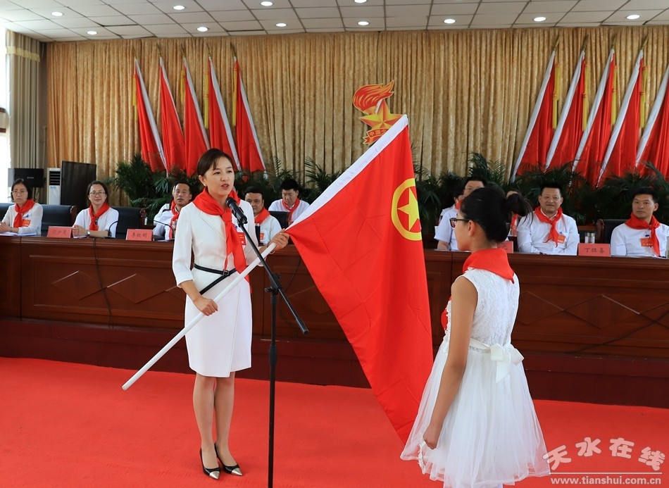 共青團(tuán)清水縣委書(shū)記、縣少工委主任吳艷傳在遞團(tuán)旗時(shí)說(shuō):“少先隊(duì)員朋友們,我是你們共青團(tuán)員大姐姐,五四的號(hào)角激勵(lì)我們前進(jìn),五月的鮮花陪伴我們成長(zhǎng)。你們是今天的少先隊(duì)員、明天的共青團(tuán)員,祖國(guó)未來(lái)的建設(shè)者和接班人,現(xiàn)在我把這面團(tuán)旗交給你們,希望你們快快成長(zhǎng),早日繼承紅旗的事業(yè),成為一名光榮的共青團(tuán)員!