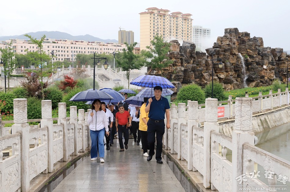當(dāng)天考察組一行實地考察了清水縣新時代文明實踐中心、軒轅廣場、軒轅湖公園、邽山生態(tài)園、清水縣全民健身公園。