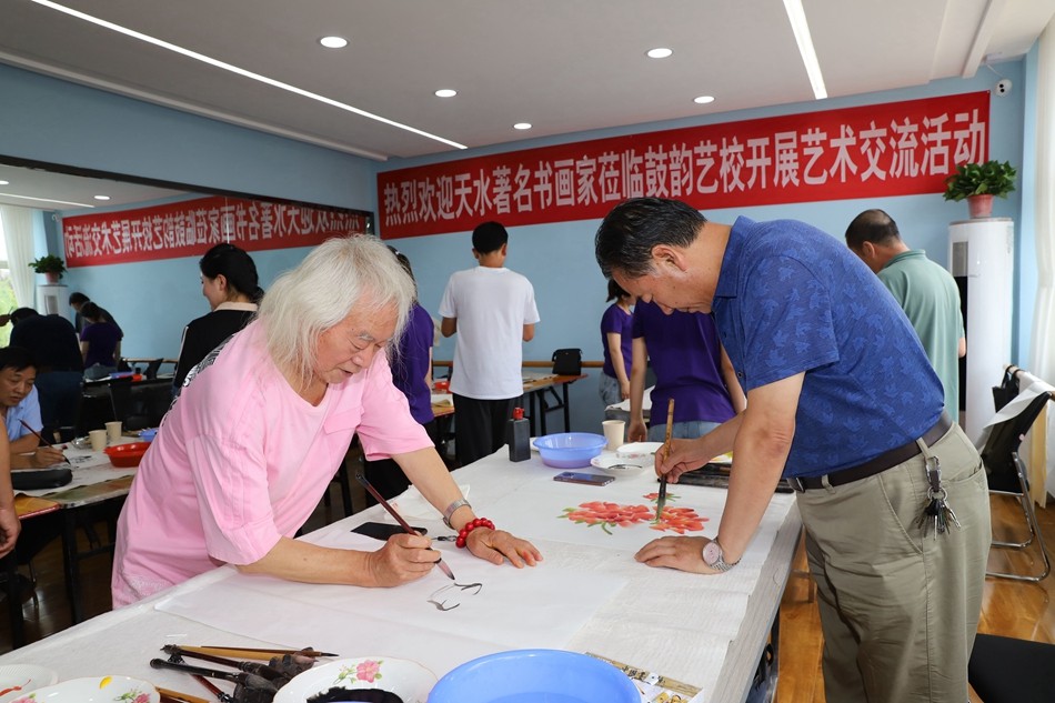著名書畫家、甘肅省書畫研究院副院長,天水市文聯(lián)原副主席杜廷楹;著名書畫家、天水師院美術(shù)學(xué)院教授范永杰;著名書畫家、甘肅省工藝美術(shù)大師楊蔭濃;天水市美協(xié)副主席曹寶凌 ; 天水市美協(xié)副主席汪洋;天水市美協(xié)副主席趙暉;天水市書協(xié)副主席陳安祥;天水市書協(xié)駐會副主席蘇建喜;天水市美協(xié)秘書長豆興軍;天水市美協(xié)副秘書長,麥積區(qū)美協(xié)主席杜未 等書畫藝術(shù)家一行,先后來到軒轅湖公園、邽山生態(tài)園、博物館開展采風(fēng)活動,并到清水鼓韻藝校開展了書畫藝術(shù)交流活動,為藝校建設(shè)提出了寶貴的指導(dǎo)意見。