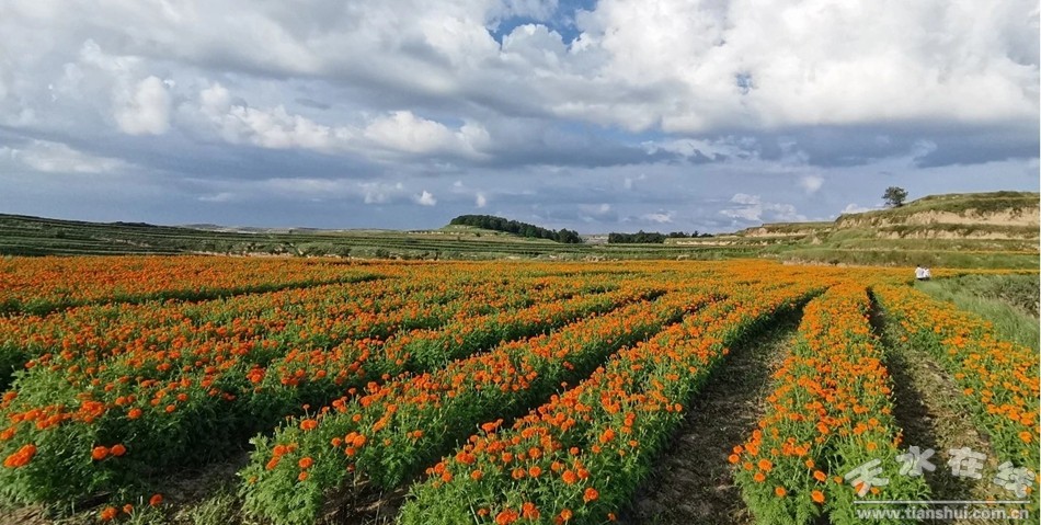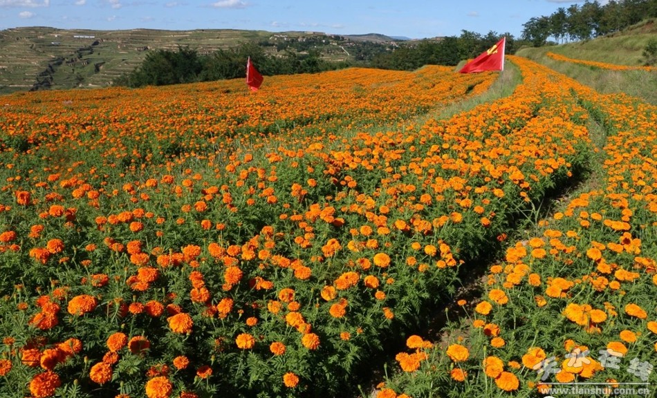 (松樹鎮(zhèn)左李村農機農業(yè)專業(yè)合作社種植的萬壽菊)